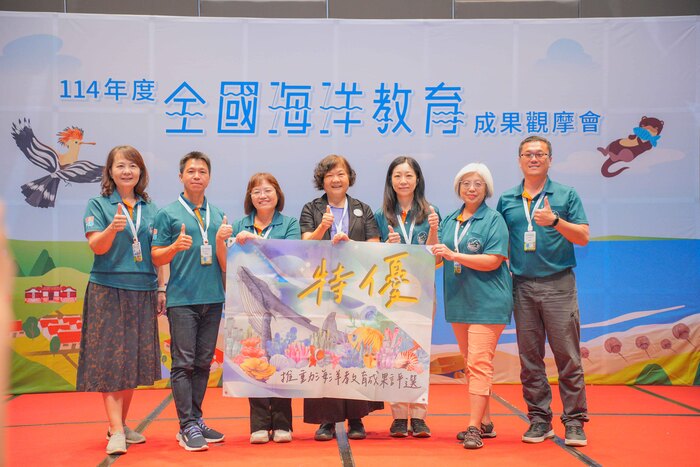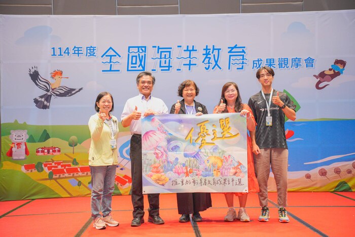 此外,本年度特別頒發「海洋精神獎」,鼓勵縣市積極創新突破,跨域結合。如雲林縣推動「海洋詩/繪本/題畫詩」三階創作模式,將學生作品數位化為電子書與影音教材,建立永續的在地化資源庫。嘉義縣善用祥和國小貝殼館,設計「海洋殿堂」課程,結合貝殼叔叔到校教學外,同時也培訓學生成為小小導覽員。臺東縣辦理Vlog影片徵件、攝影比賽、海洋詩創作、繪畫競賽與海洋科普繪本徵選等,鼓勵學生展現創意與反思實作,並透過評量工具檢核學習成效。