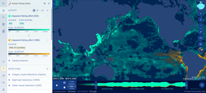 Global Fishing Watch(全球漁業觀測)是一個以提升海上活動透明度為核心的開放平臺,透過AIS船舶自動識別系統、衛星影像、夜光偵測與機器學習等技術,將全球漁船活動視覺化,提供即時與歷史資料查詢。使用者能自由放大至特定海域,包括臺灣沿近海,清楚觀察漁船航跡、捕撈熱區、靠港紀錄、遭遇事件與訊號中斷等資訊。平臺資料完全開放且免費,並整合VIIRS夜間光偵測與Sentinel-2衛星影像,可辨識未開啟AIS的「暗船」,成為全球重要的漁業透明工具。